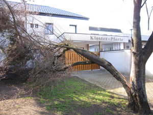 Auch bei uns im Burgenland richten Stürme große Schäden an. So mancher Baum muss dran glauben. Im Kurpark gibt es aber im Gegensatz zum Klostergarten einen Baumdienst, der die Bäume regelmäßig kontrolliert. So mussten in der Birkenallee bei der Zufahrt bereits einige Bäume durch hitze- und trockenheitsresistentere Bäume ersetzt werden. Wir hoffen, auch diesen Baum ersetzen zu können, aber bis er wieder so groß ist...