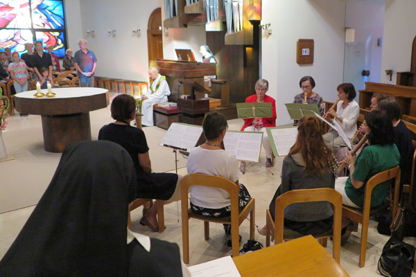Aus diesem Anlass gestaltet das "Mönchhofer Flötenensemble" die Messfeier musikalisch, Zelebrant ist Prof. P. Dr. Georg Braulik OSB; wir sind reich beschenkt! Anschließend war die Flötengruppe zu einem gemütlichen Frühstück eingeladen.